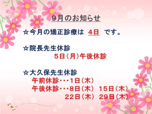 9月のお知らせ